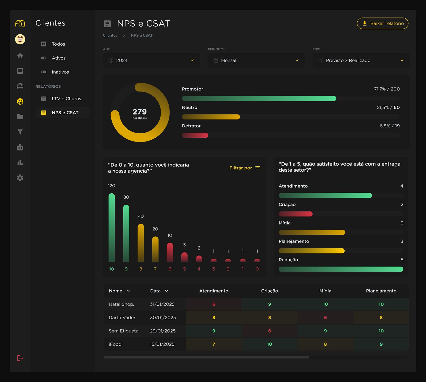 O Ad-Flow é um software criado para atender às necessidades específicas de agências de publicidade que buscam mais organização, eficiência e controle no dia a dia. Pensado para integrar atividades essenciais em um único ambiente, o sistema foi desenvolvido para gerenciar fluxos de trabalho, facilitar a colaboração em equipe, monitorar a satisfação dos clientes e manter a gestão financeira sob controle, tornando a rotina das agências mais produtiva e estratégica.
